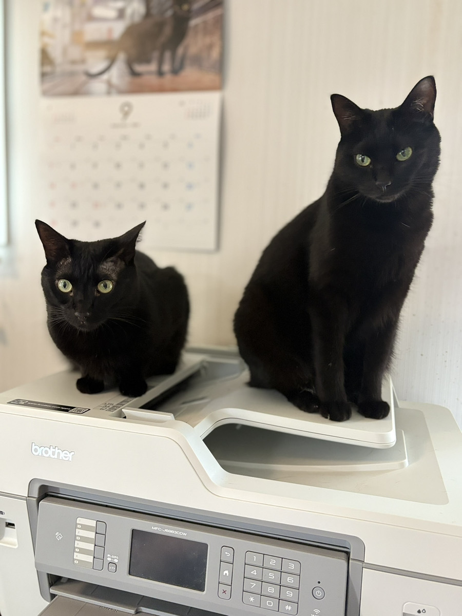 元保護猫の黒猫シスターズです(※事務所にはおりません)